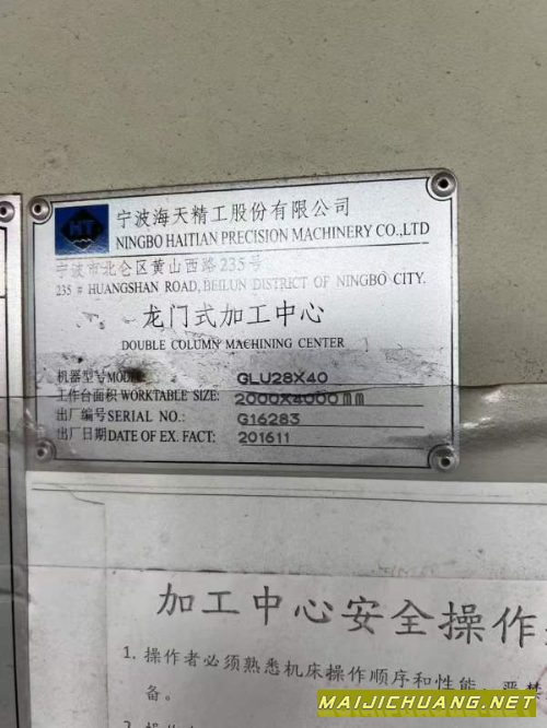 宁波海天2840数控龙门,工作台2000/4000mm,门宽2800m.